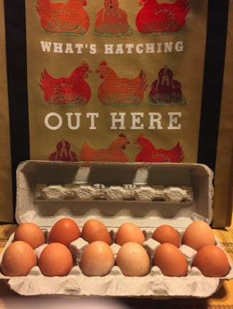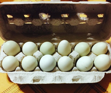 Our chickens produce white eggs and brown eggs.... even blue and green eggs, naturally.
