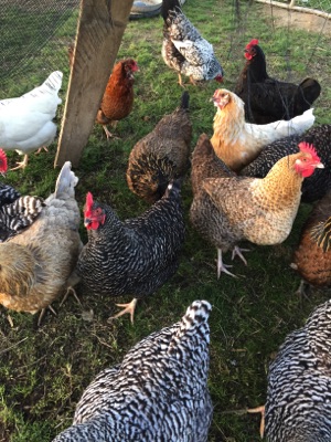 Our chickens are well cared for and they live their entire lives on our farm, enjoying all the grass and insects they can eat! And no roosters to run them ragged!